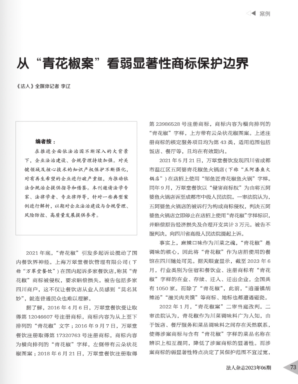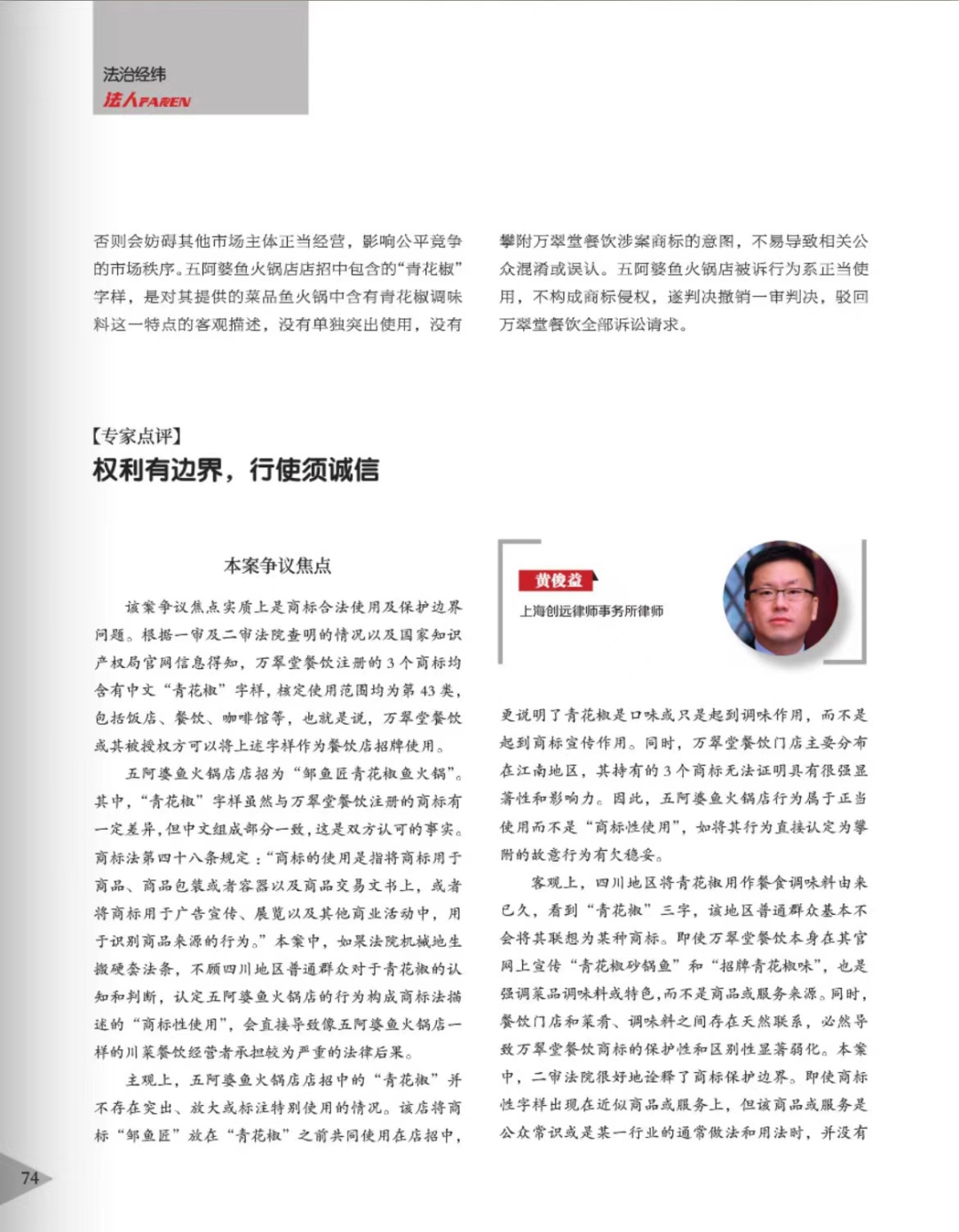 东营辉知简讯 | 辉知队黄俊益律师应“法治日报”旗下杂志邀请,就“青花椒”案发表专家点评